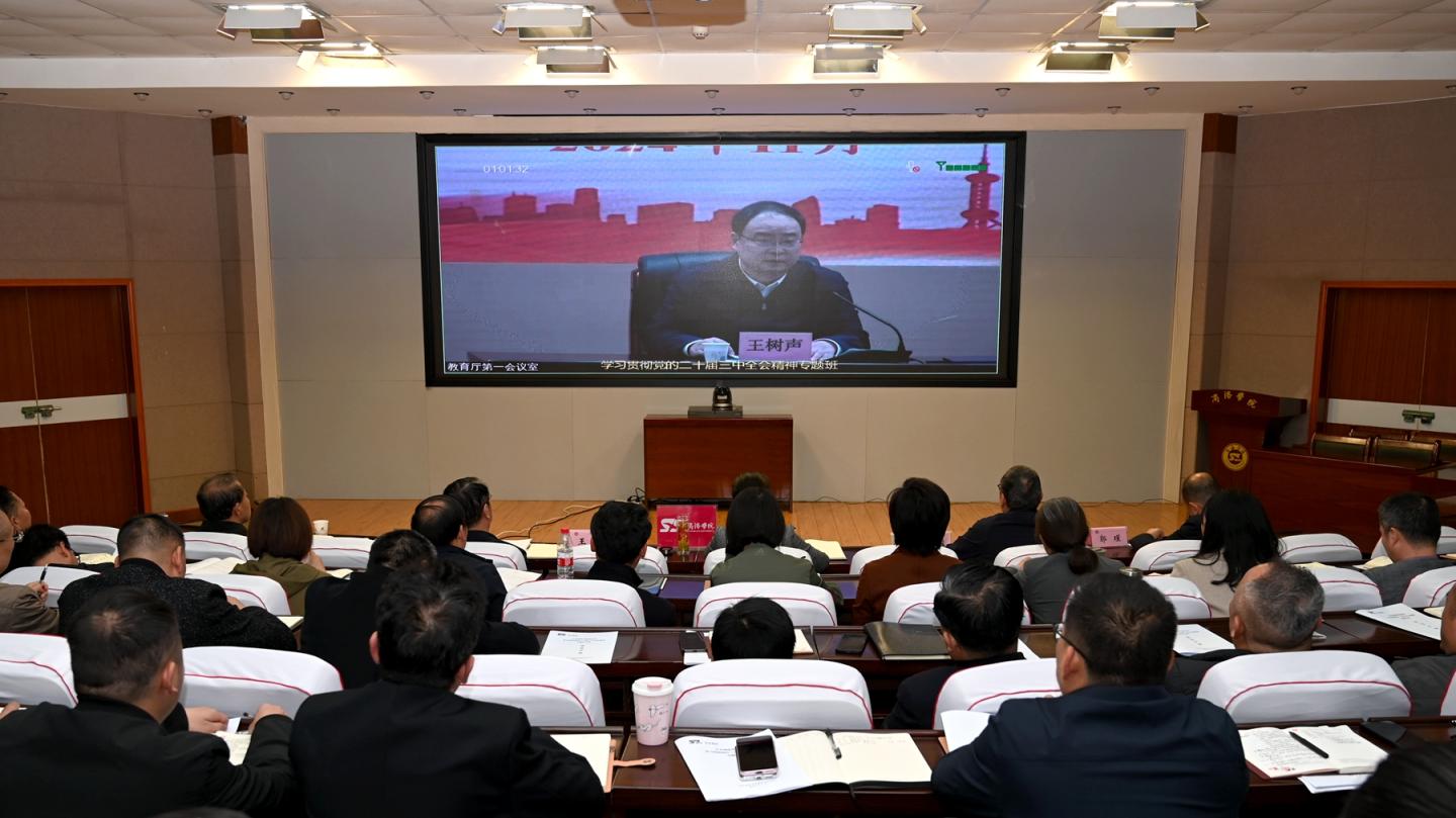 11月5日至8日,省委教育工委、省教育廳舉辦全省高校領(lǐng)導(dǎo)干部學(xué)習(xí)貫徹黨的二十屆三中全會(huì)精神專題研討班。商洛學(xué)院在北新街校區(qū)設(shè)立分會(huì)場(chǎng),全體校領(lǐng)導(dǎo)、處級(jí)干部參加培訓(xùn)。專題研討班以黨的二十屆三中全會(huì)精神為主題,通過視頻培訓(xùn)、集中領(lǐng)學(xué)、專題學(xué)習(xí)、網(wǎng)上自學(xué)等形式,教育引導(dǎo)廣大黨員干部以習(xí)近平新時(shí)代中國(guó)特色社會(huì)主義思想凝心鑄魂,深刻領(lǐng)悟“兩個(gè)確立”的決定性意義,不斷增強(qiáng)“四個(gè)意識(shí)”、堅(jiān)定“四個(gè)自信”、做到“...