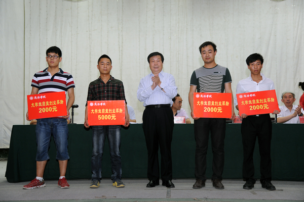 張景書在講話中向受表彰、受資助學(xué)生,并通過(guò)他們向全體在校學(xué)生提出了四點(diǎn)希望:一是希望同學(xué)們立志高遠(yuǎn),樹(shù)立堅(jiān)定理想信念,及早確立努力學(xué)習(xí)、不斷超越自我的奮斗目標(biāo),早日實(shí)現(xiàn)美好的理想;二是希望同學(xué)們抓住大學(xué)幾年的機(jī)會(huì),在??炭鄬W(xué)習(xí),練就服務(wù)祖國(guó)、報(bào)效祖國(guó)的本領(lǐng),把自己塑造成為國(guó)家建設(shè)需要的應(yīng)用型人才,為實(shí)現(xiàn)中國(guó)夢(mèng)貢獻(xiàn)自己的力量;三是希望同學(xué)們?cè)鰪?qiáng)創(chuàng)業(yè)意識(shí)、創(chuàng)業(yè)精神,把自己塑造成為具有創(chuàng)新思維和創(chuàng)業(yè)能力的高素質(zhì)創(chuàng)新型人才,通過(guò)創(chuàng)新創(chuàng)業(yè)服務(wù)創(chuàng)新型國(guó)家建設(shè),實(shí)現(xiàn)自身價(jià)值;四是希望同學(xué)們以身邊的優(yōu)秀學(xué)生為榜樣,學(xué)習(xí)先進(jìn),錘煉高尚品格,積極倡導(dǎo)社會(huì)文明新風(fēng),積極參加志愿服務(wù),主動(dòng)承擔(dān)社會(huì)責(zé)任,為學(xué)校發(fā)展和社會(huì)進(jìn)步再立新功。