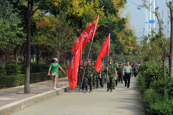 9月16日上午,我校2013級(jí)新生在副院長、學(xué)生軍訓(xùn)和入學(xué)教育工作領(lǐng)導(dǎo)小組副組長魏書堂,軍訓(xùn)團(tuán)領(lǐng)導(dǎo)和全體教官的帶領(lǐng)下,順利完成了作為軍訓(xùn)重要科目的行軍拉練活動(dòng)。