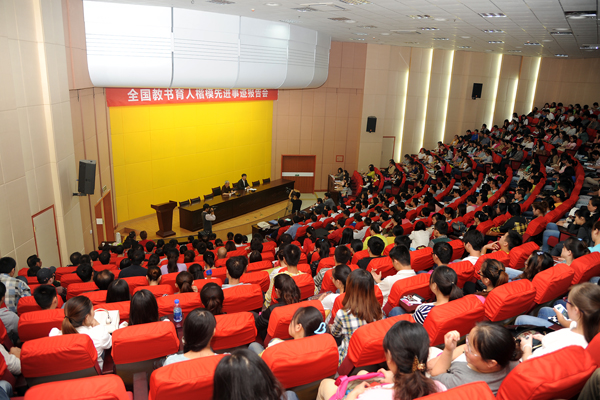 劉占良1981年畢業(yè)于我校數(shù)學系,加入教育戰(zhàn)線。32年來,他堅持以德立己,為人謙和,善待學生,甘于奉獻,用自身言行催發(fā)學生道德品質的升華,以啟發(fā)誘導促進學生知識能力的提高,用愛心善舉資助寒門子弟圓大學之夢。9月4日,劉占良從31個?。▍^(qū)、市)和新疆生產建設兵團推薦的64名候選人中脫穎而出,榮獲2013年度“全國教書育人楷?!狈Q號。今年全國共有10人獲此殊榮,劉占良是陜西省唯一上榜的教師。新華網(wǎng)、中國教育網(wǎng)、《人民日報》等媒體分別對他的事跡作了專題報道。