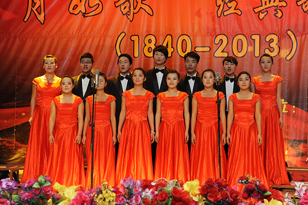 演唱會以“傳播正能量、唱響中國夢”為主題,分為“雄關漫道真如鐵”、“人間正道是滄?!焙汀伴L風破浪會有時”三個篇章。一曲《送別·長亭外》拉開了演唱會的序幕。該曲節(jié)奏時而舒緩,時而高亢,旋律婉轉悠揚,處處表達著對友人的深情厚誼、戀戀難舍的情感。接下來,同學們深情演唱了《月兒彎彎照九洲》《八月桂花遍地開》《映山紅》《十送紅軍》《過雪山草地》等多首經典歌曲。一曲《山丹丹花開紅艷艷》將演唱會推向高潮,現(xiàn)場掌聲雷動,《歌唱祖國》以激情澎湃的氣勢向我們傳遞著中華兒女對祖國的濃情厚意;《東方之珠》《七子之歌—澳門》仿佛緩緩訴說著祖國日益強大。最后,在一曲充滿濃情的《讓世界充滿愛》歌聲中,演唱會圓滿結束。