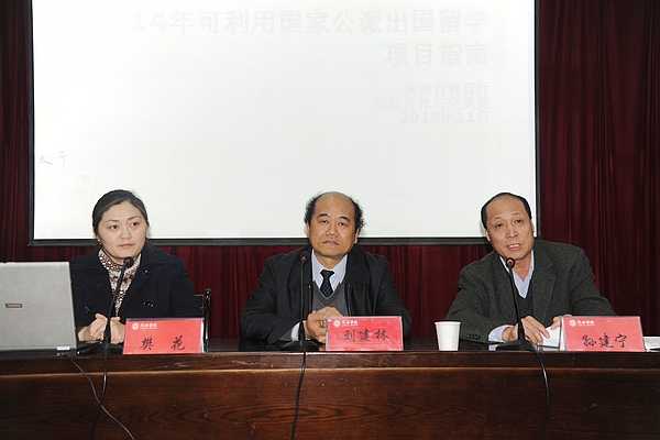2014年國(guó)家公派出國(guó)留學(xué)項(xiàng)目已于今年10月啟動(dòng),為了幫助我校教師深入了解該項(xiàng)目的相關(guān)政策與具體申請(qǐng)要求,推進(jìn)我校教師對(duì)出國(guó)留學(xué)項(xiàng)目的有效利用,進(jìn)一步加快我校高層次人才隊(duì)伍建設(shè),11月27日,陜西省教育廳國(guó)際合作與交流處處長(zhǎng)孫建寧,國(guó)際合作與交流處國(guó)家公派出國(guó)留學(xué)項(xiàng)目負(fù)責(zé)人、西安外國(guó)語大學(xué)國(guó)際合作與交流處老師樊花應(yīng)邀來到我校,對(duì)該項(xiàng)目進(jìn)行了詳細(xì)講解說明。院長(zhǎng)劉建林出席會(huì)議并作了講話,各系(部)主任、全校碩士研究生以上學(xué)歷教職工參加會(huì)議。會(huì)議由校干部人事處、外事辦公室聯(lián)合舉辦。