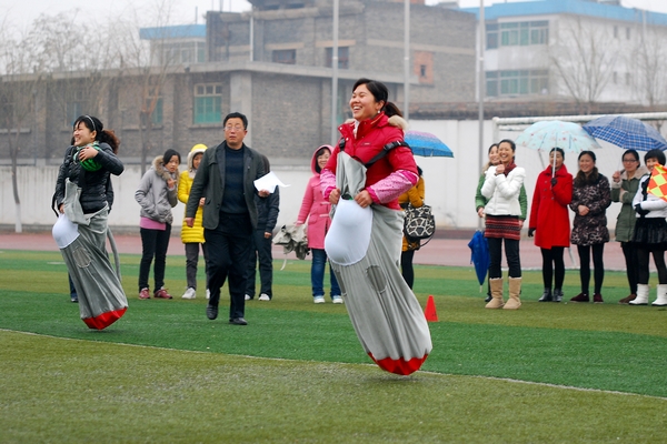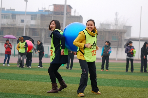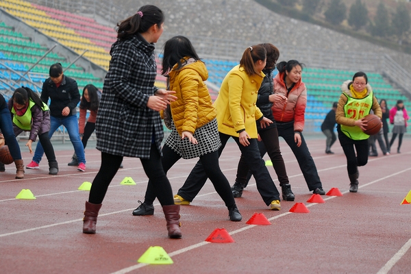 隨后舉辦的趣味運(yùn)動(dòng)會(huì)設(shè)有“海底撈月”、“袋鼠跳”、背球接力等三個(gè)集體項(xiàng)目,單人跳繩和單人踢毽兩個(gè)個(gè)人項(xiàng)目。平日里緊張工作的女教職工們放松身心,一改嚴(yán)肅的面孔,輕裝上陣,踴躍參賽。男教職工們也興致勃勃地來(lái)到活動(dòng)現(xiàn)場(chǎng)為女教職工們出謀劃策、加油喝彩?;顒?dòng)現(xiàn)場(chǎng)笑聲不斷,氛圍輕松愉悅,充分展示了我校女教職工團(tuán)結(jié)、向上、開(kāi)朗、活潑的風(fēng)采魅力。