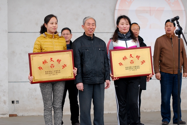 在第104個(gè)“三八”國(guó)際勞動(dòng)?jì)D女節(jié)即將到來(lái)之際,我校于3月5日下午,召開(kāi)“三八”婦女節(jié)表彰會(huì)及女教職工趣味運(yùn)動(dòng)會(huì),對(duì)一年來(lái)在教學(xué)管理各項(xiàng)工作中做出突出貢獻(xiàn)的先進(jìn)女教職工集體和個(gè)人進(jìn)行表彰,以一場(chǎng)妙趣橫生的趣味運(yùn)動(dòng)會(huì)喜迎婦女節(jié)。校黨委副書(shū)記、工會(huì)主席左曉民出席表彰會(huì),并向獲獎(jiǎng)集體和個(gè)人頒發(fā)了獎(jiǎng)牌與證書(shū)。校工會(huì)委員、女工委員,工會(huì)各分會(huì)主席和女教職工參加了表彰會(huì)。