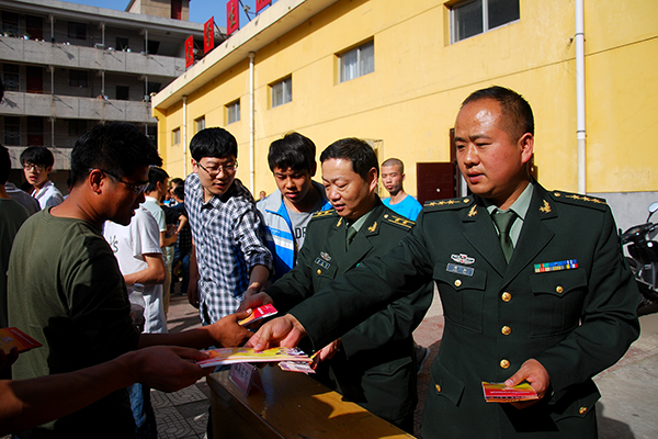 為了認(rèn)真做好2014年應(yīng)屆畢業(yè)生入伍預(yù)征和部隊(duì)直招士官工作,我校成立了以黨委副書記左曉民為組長的入伍預(yù)征工作領(lǐng)導(dǎo)小組,通過網(wǎng)絡(luò)、報(bào)刊、等校園媒介,以及橫幅標(biāo)語、海報(bào)、展板等各類宣傳載體,廣泛深入地進(jìn)行征兵工作宣傳動(dòng)員。各二級(jí)學(xué)院和各部門密切配合,通力協(xié)作,確保學(xué)校應(yīng)征入伍的大學(xué)生程序、標(biāo)準(zhǔn)和資料符合要求,力爭把優(yōu)秀的大學(xué)生兵源送往部隊(duì),為我國建設(shè)強(qiáng)大的國防事業(yè)做出應(yīng)有的貢獻(xiàn)。