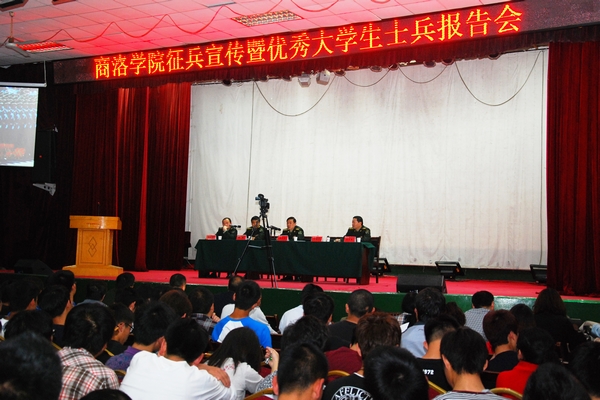 青春獻(xiàn)國防,建功在軍營。為促進(jìn)我校學(xué)生對(duì)大學(xué)生參軍入伍相關(guān)政策和知識(shí)的了解,鼓勵(lì)青年大學(xué)生投身國防建設(shè),5月7日,我校召開2014年征集大學(xué)生士兵政策宣講暨優(yōu)秀大學(xué)生軍人事跡報(bào)告會(huì)。校黨委副書記左曉民、商洛軍分區(qū)政委張永忠、商州區(qū)武裝部政委張翔、副部長劉永凱、商洛軍分區(qū)征兵辦公室科長沈禮軍出席會(huì)議,全體輔導(dǎo)員及學(xué)生代表400余人參加了會(huì)議。會(huì)議由商州區(qū)武裝部政委張翔主持。