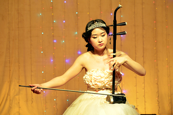 音樂學(xué)專業(yè)優(yōu)秀畢業(yè)生陳穎、竇貝貝、吳丹、強(qiáng)薇、郭敏、楊柳、褚瑤為大家?guī)砹司实谋硌??!段矣H愛的爸爸》旋律優(yōu)美,演唱深情動(dòng)人,描寫了少女勞萊達(dá)為追求愛情向爸爸懇求的場(chǎng)景;《讓我這樣看著你的樣子》生動(dòng)形象地講述了巴丹公主對(duì)花木蘭這位替父從軍的假小子投入愛慕之情的故事;《揚(yáng)鞭催馬運(yùn)糧忙》熱情明快,富有強(qiáng)烈的藝術(shù)感染力;二胡表演《奔馳在千里草原》描寫了牧民在草原上奔馳的情景,抒發(fā)了對(duì)未來幸福生活的向往;歌曲《我要我們?cè)谝黄稹沸?010級(jí)畢業(yè)生對(duì)自由對(duì)未來無限向往的心聲。