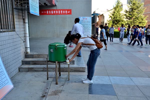 今年我校在多個新生接待點設立了飲水處和休息處,為前來報到的學生和家長提供方便的休息場地,讓新生從初來大學就體驗到校園的溫情。