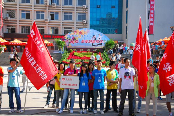 一踏進校園,花卉的芳香隨秋風撲面而來,艷紅色的熱氣球拉起印有“讓青春的笑臉,寫滿激情的詩篇”“讓青春的笑聲,點綴和諧的樂章”等6條橫幅,歡迎新生入學。同時,各院還懸掛起了“今日我以母校為榮,明天母校為我驕傲”“寒窗十年終圓夢今日重新起航,壯志豪情譜新篇我們攜手共進”等標語,盡顯莘莘學子風華正茂之氣。