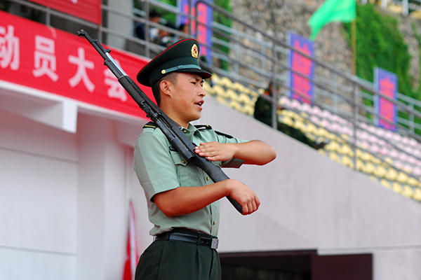 今年新生軍訓(xùn)增加的“操槍訓(xùn)練”項目,當(dāng)屬本次軍訓(xùn)最大的亮點。西安政治學(xué)院政治部主任徐自軍大校在接受采訪時介紹,今年操槍訓(xùn)練使用的是56式半自動步槍,主要練習(xí)舉槍禮儀、托槍、操槍和刺殺操等動作。每個營輪流進(jìn)行感受,盡量保證每位同學(xué)都能有一次“荷槍實彈”的體驗。軍訓(xùn)團(tuán)還挑選出98名新生組成操槍方隊,在軍訓(xùn)匯演時向全校師生展示他們的訓(xùn)練成果。