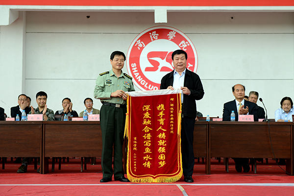 為增進兩校之間的友誼,黨委書記張景書代表我校向西安政治學(xué)院贈送了“攜手育人鑄就強國夢,深度融合譜寫魚水情”的錦旗。大會結(jié)束后,校長劉建林專程慰問了全體承訓(xùn)官兵,并與黨委副書記左曉民一起陪同趙歲步副院長和楊定友大校參觀了我校校園。