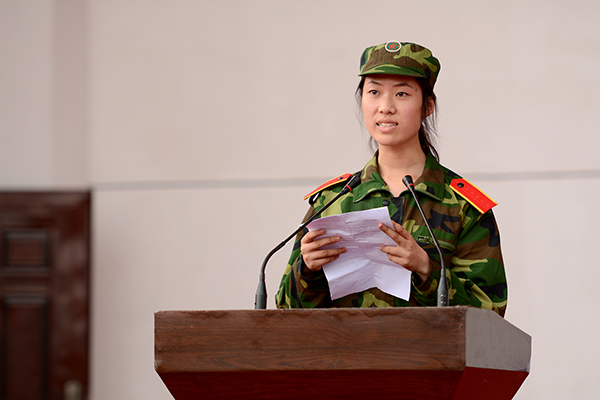 軍訓(xùn)學(xué)生代表、語言文化傳播學(xué)院學(xué)生孟丹做了發(fā)言。她總結(jié)了軍訓(xùn)的感想和收獲,表達了對軍訓(xùn)教官和老師的感謝,并希望同學(xué)們將軍訓(xùn)中寶貴的收獲植根于今后的人生中,努力把自己塑造成有用之才。