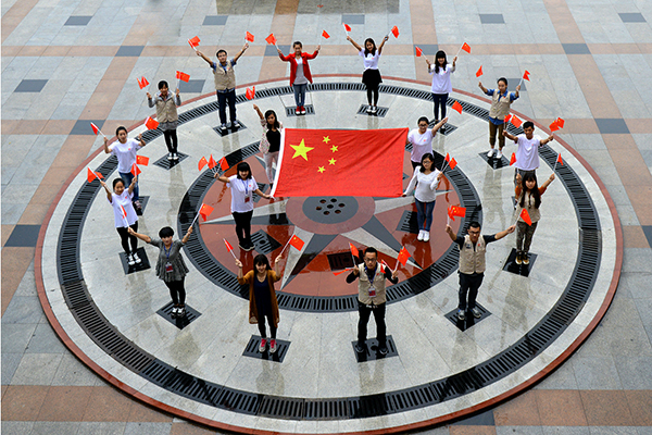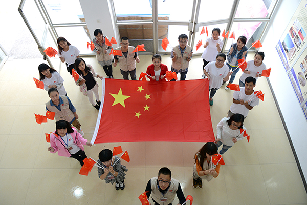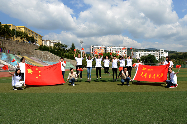 在中華人民共和國65周年華誕到來之際,有網(wǎng)友發(fā)起“我和國旗合個影,我為中國點個贊”活動,迅速燃起了網(wǎng)友們的愛國熱情,短短幾天內(nèi),該話題在微博上的閱讀量就超過6000萬。該活動在我校也受到熱捧。近日,我校大學生通訊社的同學們自發(fā)開展了“我與國旗合個影 我向祖國獻祝?!被顒?,拍攝并在微博上展示自己與國旗的合影,撰寫或轉(zhuǎn)發(fā)祝福祖國的話語,用鮮艷的五星紅旗、最美的笑臉、最真的祝福為祖國65周年生日華誕獻禮。