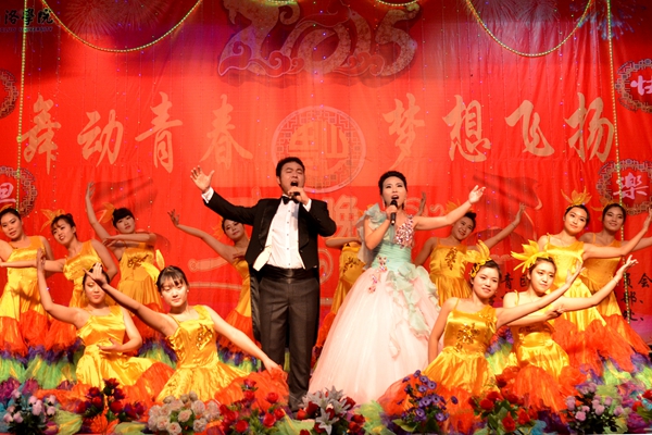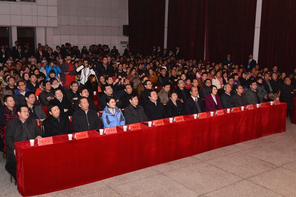 馬蹄留勝跡,羊毫譜新歌。12月30日晚,我校2015年度元旦文藝晚會在大學(xué)生活動中心隆重舉行。商洛市副市長劉榮賢,校黨委書記張景書、校長劉建林、黨委副書記左曉民、紀(jì)委書記王思懷、副校長魏書堂,商洛市教育局局長胡棟梁、共青團(tuán)商洛市委書記曹艷萍、商州區(qū)政府副區(qū)長楊俊芬,商洛供電局、中國銀行商洛分行、中國建設(shè)銀行商洛分行、中國郵政商洛分公司、中國移動商洛分公司、中國聯(lián)通商洛分公司、中國電信商洛分公司、商洛市劇團(tuán)、中國移動商州分公司有關(guān)領(lǐng)導(dǎo)同師生們一起觀看了演出。