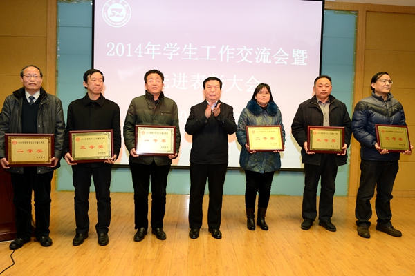 大會(huì)對(duì)生物醫(yī)藥工程學(xué)院等6個(gè)2014年學(xué)生工作先進(jìn)集體、楊增強(qiáng)等8名學(xué)生管理先進(jìn)個(gè)人、王曉等15名優(yōu)秀班主任、葉春等8名優(yōu)秀輔導(dǎo)員,以及2014年學(xué)生工作研究優(yōu)秀論文、優(yōu)秀學(xué)生工作日志進(jìn)行了表彰。張景書、彭虎軍為獲獎(jiǎng)集體和個(gè)人代表頒發(fā)了獎(jiǎng)牌、證書。學(xué)生處處長石啟英宣讀了表彰決定。