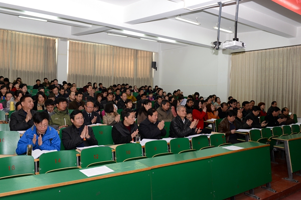 報告強調(diào),2015年是我校全面深化教育教學(xué)改革的關(guān)鍵之年,是全面完成“十二五”規(guī)劃的收官之年,全體教職員工必須要有前所未有的氣魄、勇氣、膽識和擔(dān)當(dāng),不斷強化“學(xué)習(xí)、法制、擔(dān)當(dāng)、執(zhí)行、導(dǎo)向”五種意識;落實“堅持正確的政治方向、堅持學(xué)校發(fā)展為第一要務(wù)、堅持用團結(jié)品質(zhì)凝聚學(xué)校發(fā)展的正能量、堅持廉政勤政,風(fēng)清氣正、堅持個人價值與學(xué)校目標(biāo)價值趨同”五個堅持;把握好“發(fā)展與民生、內(nèi)部管理挖潛與外部支持爭取、人才引進與崗位成才、思想政治教育與政策制度引導(dǎo)、‘要我干’與‘我要干’”五個關(guān)系,突出“政治強、工作實、標(biāo)準(zhǔn)高、服務(wù)真、作風(fēng)硬”的五字工作準(zhǔn)則。萬眾一心,同心同德,以勇于擔(dān)當(dāng)?shù)臍馄呛惋枬M的工作熱情,以抓鐵有痕、踏石留印的良好作風(fēng)全身心投入到學(xué)校事業(yè)中去,切實提高工作執(zhí)行力,保證工作落實,全面完成2015年工作任務(wù),為把我校早日建成特色鮮明、多學(xué)科協(xié)調(diào)發(fā)展的應(yīng)用型本科院校而努力奮斗!