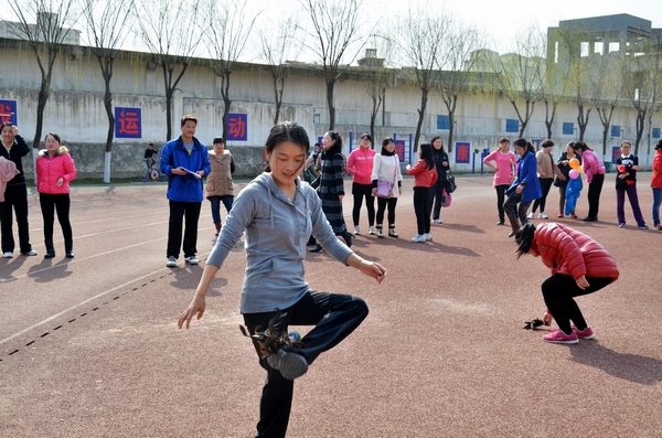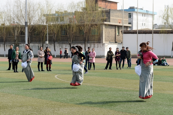 3月8日,春風(fēng)和煦,陽光明媚,校工會(huì)和體育教學(xué)部在體育場(chǎng)聯(lián)合舉辦了以“凝神聚氣迎評(píng)建,趣味健身同歡樂”為主題的女教職工趣味運(yùn)動(dòng)會(huì),慶?!叭恕眹?guó)際勞動(dòng)?jì)D女節(jié)。校黨委副書記、工會(huì)主席彭虎軍出席慶?;顒?dòng)并講話。工會(huì)委員、女工委員、工會(huì)各分會(huì)主席和女教職工參加了活動(dòng)。