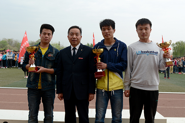 在熱烈的掌聲和歡呼聲中,黨委書記張景書為獲得精神文明獎的集體頒獎,紀委書記王思懷為獲得男女團體前三名的集體頒獎,副校長魏書堂為獲得男子團體前三名的集體頒獎,黨委副書記彭虎軍為獲得女子團體前三名的集體頒獎。