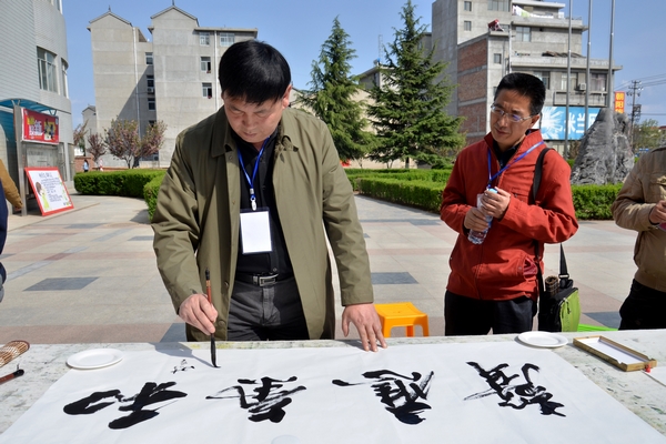 彭虎軍代表學校對商洛書畫家關心、支持我校建設與發(fā)展表示感謝。他說,商洛書畫家來到我校揮毫潑墨,各顯神通,為學校迎評工作添磚加瓦,為學校藝術人才培養(yǎng)提供良好的機遇,將一縷清新高雅之風吹進了校園。希望今后加強學校與社會藝術團體的文化交流學習,營造更加濃郁的校園藝術文化氛圍。