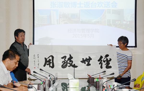 歡笑情如舊,相留畏曉鐘。臺(tái)灣南開科技大學(xué)張淑敏博士來我校訪學(xué)即將結(jié)束歸臺(tái),5月18日晚,學(xué)校為其舉辦歡送會(huì),并就臺(tái)灣南開科技大學(xué)師生來我校訪學(xué)作了階段性總結(jié)交流。副校長魏書堂出席活動(dòng)。發(fā)展規(guī)劃與合作交流處處長王新軍、學(xué)生處處長石啟英、教務(wù)處副處長張建芳、經(jīng)濟(jì)與管理學(xué)院黨政負(fù)責(zé)人及師生代表參加歡送會(huì)并作了交流發(fā)言。歡送會(huì)由經(jīng)濟(jì)與管理學(xué)院院長樊景博主持。