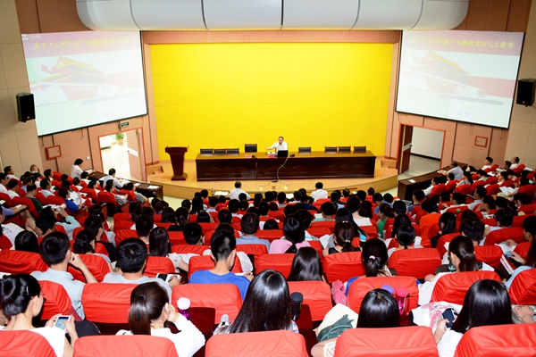 6月10日,黨委委員、紀(jì)委書(shū)記王思懷,黨委委員、副校長(zhǎng)魏書(shū)堂,黨委委員、教學(xué)評(píng)估中心主任劉端森,黨委委員、干部人事處處長(zhǎng)高榮發(fā)分別為全校各二級(jí)學(xué)院黨總支、機(jī)關(guān)黨總支、直屬黨支部黨員干部主講了“三嚴(yán)三實(shí)”專(zhuān)題教育黨課。