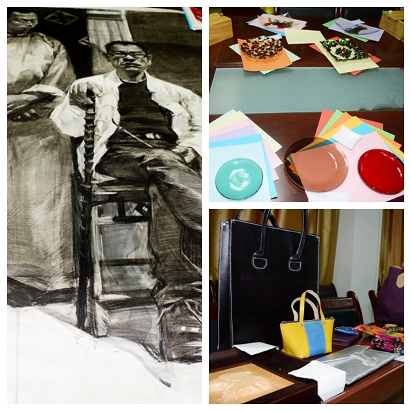 此次展出的作品主要是我校學(xué)生蔣俐、李天琦等6名學(xué)生在臺灣南開科技大學(xué)和東方設(shè)計學(xué)院交流學(xué)習(xí)期間動手制作的純手工藝作品,有琺瑯制品、木刻雕塑、皮革小件、皮包,同時展出了赴臺交流期間臺灣師生贈送的書法、繪畫、書籍、設(shè)計圖等作品。這些作品都是學(xué)生們用心去捕捉、探索、記錄和回味生活、醞釀幸福所創(chuàng)作的佳作,前來參觀欣賞的師生絡(luò)繹不絕。