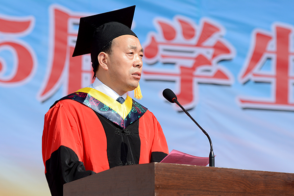 7月1日,我校舉行2015屆學(xué)生畢業(yè)典禮暨學(xué)士學(xué)位授予儀式。2615名畢業(yè)生奔赴祖國(guó)各地,開始人生新的征程。校黨委書記張景書、校長(zhǎng)劉建林、紀(jì)委書記王思懷、副校長(zhǎng)魏書堂、黨委副書記彭虎軍、副校長(zhǎng)范新會(huì)、副校長(zhǎng)劉寶盈出席,各院(部)黨政負(fù)責(zé)人、相關(guān)職能部門負(fù)責(zé)人、2015屆畢業(yè)生及輔導(dǎo)員、學(xué)生家長(zhǎng)代表參加了畢業(yè)典禮。畢業(yè)典禮由彭虎軍主持。