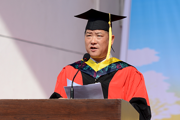 生物醫(yī)藥與食品工程學(xué)院郭耀東博士代表教師發(fā)言,向畢業(yè)生們送上了美好的祝福和囑托。他希望同學(xué)們養(yǎng)成獨(dú)立思考的習(xí)慣,不斷培養(yǎng)獨(dú)立思考的能力;牢記母?!安┞剰?qiáng)志,正道直行”的校訓(xùn),敢于擔(dān)當(dāng)、腳踏實(shí)地、開拓進(jìn)取。世界那么大,需要你們?nèi)タ纯矗瑫r(shí)希望你們作為母校的使者,向世界傳遞商洛學(xué)院的聲音!