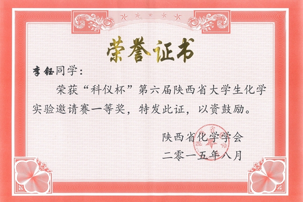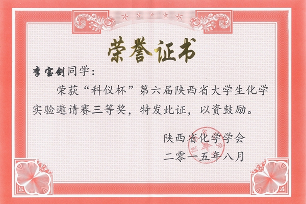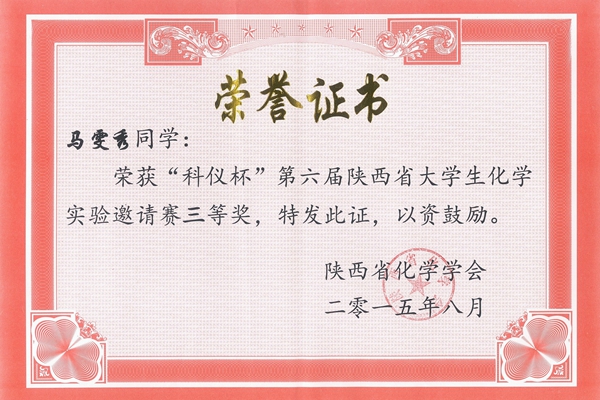 8月20至22日,由陜西省化學(xué)會(huì)主辦,寶雞文理學(xué)院承辦的“科儀杯”第六屆陜西省化學(xué)實(shí)驗(yàn)邀請(qǐng)賽暨第五屆陜西省化學(xué)實(shí)驗(yàn)中心聯(lián)席會(huì)議在寶雞文理學(xué)院舉行。我校代表隊(duì)?wèi){借扎實(shí)的理論功底及熟練的實(shí)驗(yàn)技能,獲得大賽一等獎(jiǎng)1項(xiàng),三等獎(jiǎng)2項(xiàng),實(shí)現(xiàn)了一等獎(jiǎng)從無(wú)到有的歷史性突破。