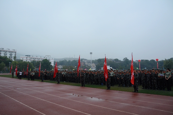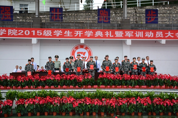在校歌《正道直行做棟梁》激昂的歌聲中,大會宣告結(jié)束。2015級全體新生在教官的指導下開始了為期兩周的大學軍訓生活。