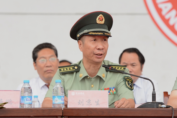 解放軍西安政治學院軍事系教授、學生軍訓團團長劉京生大校講話