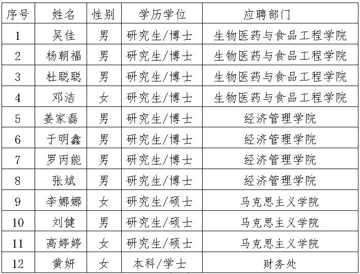 商洛學(xué)院2020年第四批擬招聘人員名單(12人)