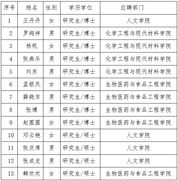 商洛學(xué)院2020年第六批擬招聘人員名單(13人)