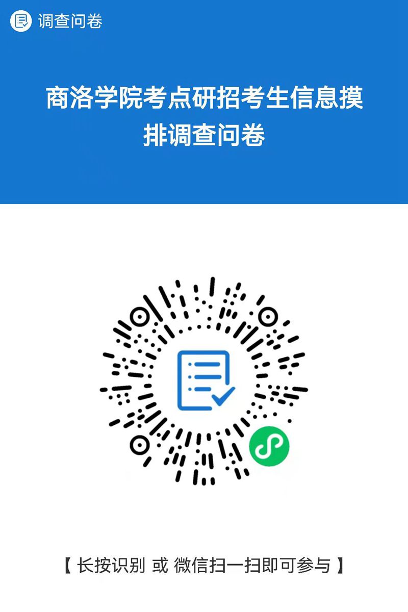 按照《關(guān)于進(jìn)一步加強(qiáng)2022年全國(guó)碩士研究生招生考試安全及考務(wù)工作的通知》(陜?cè)囇姓小?021〕34號(hào))要求,請(qǐng)各位考生于12月19日18點(diǎn)前,填寫《商洛學(xué)院考點(diǎn)研招考生信息模排調(diào)查問(wèn)卷》。