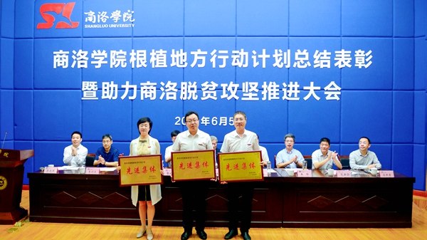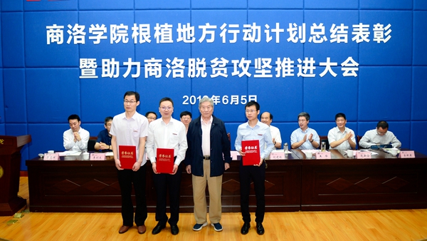 會議總結(jié)了我校根植地方行動計劃三年來取得的成效及經(jīng)驗,表彰了根植地方行動計劃先進(jìn)集體及先進(jìn)個人,頒發(fā)了2019年“趙鵬大院士獎教金”,為6個助力商洛脫貧攻堅人才服務(wù)團(tuán)授旗。會上,我校與商洛高新區(qū)(商丹園區(qū))管委會簽訂了《合作共建商洛高新區(qū)創(chuàng)新創(chuàng)業(yè)示范園協(xié)議書》,與陜西森弗天然制品有限公司簽訂了《共建商洛學(xué)院-森弗健康學(xué)院協(xié)議》。