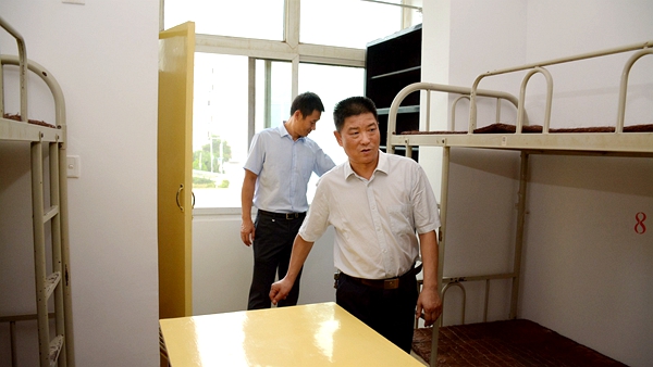 8月25日,新學期伊始,校長范新會、副校長劉勇在相關部門負責人陪同下深入各教學院部、學生食堂、學生公寓等場所,對開課前的各項準備工作進行檢查。