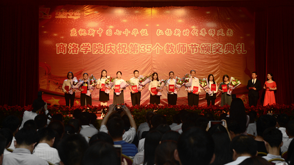 龍治剛代表學(xué)校黨委和行政領(lǐng)導(dǎo)班子祝福全體教職工節(jié)日快樂,向受到表彰的教師們表示祝賀,對奮戰(zhàn)在教學(xué)科研、管理服務(wù)、后勤安全保障等工作崗位上為學(xué)校事業(yè)發(fā)展付出心血汗水的教職員工表示感謝。他在致辭中指出,過去的一年里,全體教職員工團結(jié)一心、砥礪奮進,堅持立德樹人根本任務(wù),聚焦辦學(xué)實力與核心競爭力水平提升,在教學(xué)科研、管理服務(wù)等各項工作中取得了可喜的成績,今天獲得表彰的教師,就是全體教師和教育工作者潛心育人、默默奉獻(xiàn)、追求真理、勇于創(chuàng)新的縮影。他表示,再過20天,就是中華人民共和國成立70周年紀(jì)念日,回顧歷史、我們心潮澎湃,展望未來、我們壯志滿懷,希望全體教職員工不負(fù)習(xí)近平總書記的重托,不忘師者初心,牢記育人使命,大力弘揚“自強不息,止于至善”的商洛學(xué)院精神,同舟共濟、齊心協(xié)力,爭做“四有好老師”,為建設(shè)一流學(xué)院添磚加瓦,為實現(xiàn)中華民族偉大復(fù)興培養(yǎng)有用人才。