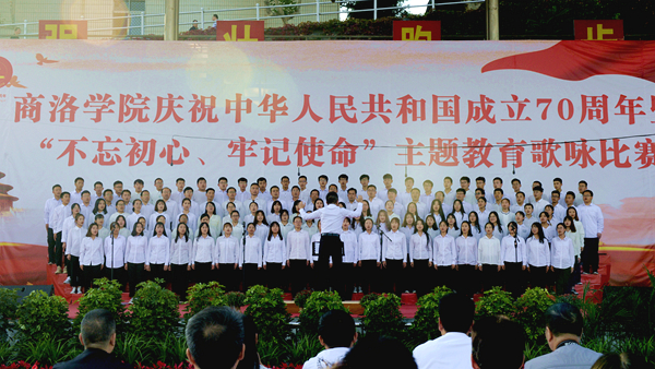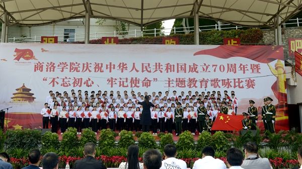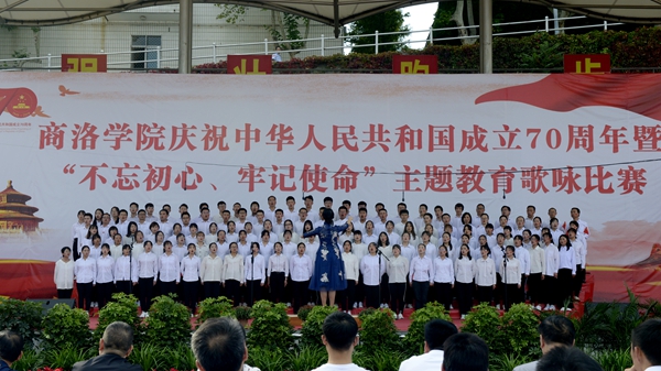 “憶往昔崢嶸歲月,抒今朝愛(ài)國(guó)情懷?!?月25日下午,我校慶祝中華人民共和國(guó)成立70周年暨“不忘初心、牢記使命”主題教育歌詠比賽在校體育場(chǎng)舉辦。校領(lǐng)導(dǎo)龍治剛、范新會(huì)、彭虎軍、劉寶盈、劉勇出席活動(dòng)并與師生同臺(tái)竟唱。全體教職工和2019級(jí)學(xué)生4000余人觀看了比賽。11支代表隊(duì)用優(yōu)美的旋律和嘹亮的歌聲謳歌中國(guó)共產(chǎn)黨帶領(lǐng)全國(guó)人民走過(guò)的波瀾壯闊的70年光輝歷程,表達(dá)對(duì)祖國(guó)母親的熱愛(ài)與祝福。