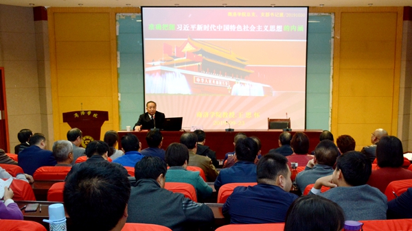 根據(jù)我?!安煌跣摹⒗斡浭姑?,做新時代合格黨支部書記”培訓(xùn)班課程安排,10月30日下午,校紀(jì)委原書記王思懷教授以《準(zhǔn)確把握習(xí)近平新時代中國特色社會主義思想的內(nèi)涵》為題為全校黨總支書記、黨支部書記作專題報告。
