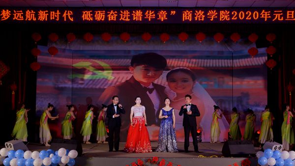 12月26日晚,我?!爸暨h航新時代,砥礪奮進譜華章”2020年元旦晚會在大學(xué)生活動中心舉辦。校黨委書記龍治剛、黨委副書記彭虎軍、副校長劉寶盈、副校長王新軍、副校級領(lǐng)導(dǎo)王思懷,商洛市委宣傳部副部長、市委文明辦主任李丹峰,團市委書記王小寧,國網(wǎng)商洛供電公司、中國電信商洛分公司、中國移動陜西有限公司商州分公司、中國聯(lián)通商洛分公司、中國郵政集團公司商洛市分公司、陜西君威集團等單位負責(zé)人及相關(guān)人員,與全校500余名師生代表一同觀看了演出。