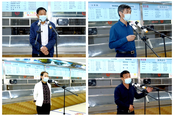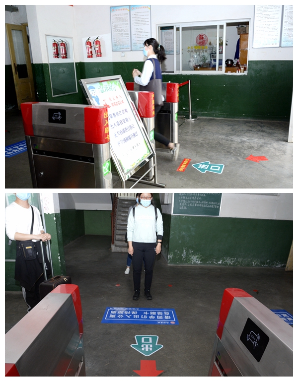 整場演練嚴格按照學校春季開學及疫情防控工作方案進行,秩序井然、嚴謹細致。在教室演練現(xiàn)場,臺階上紅色的路線標識清晰醒目,學生在班級聯(lián)絡(luò)教師統(tǒng)一帶隊下,佩戴口罩、進行手部消毒后按指定路線經(jīng)測溫門進入教學樓;6號公寓樓西門口,學生持一卡通,經(jīng)工作人員體溫槍測溫后,間隔1.5米有序進入公寓;食堂外,就餐人員需在新設(shè)置的洗手池進行“七步洗手”,經(jīng)工作人員測溫、手部消毒后進入指定食堂,間隔取餐后,按桌面標識提示面南而坐,落座就餐,就餐完畢隨即戴上口罩,將餐具送至收餐處,并按指定出口出門。