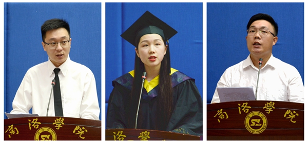 教師代表、經濟管理學院董朕博士,畢業(yè)生代表、生物學院制藥1602班王茜同學及在校生代表、人文學院孫增印同學分別作了發(fā)言,為畢業(yè)生們送去美好祝福,祝愿每一位畢業(yè)生前程似錦、事業(yè)有成,擁有幸福的人生。藝術學院畢業(yè)生張倩說,在今年如此特殊的形勢下,學校為畢業(yè)生精心策劃組織畢業(yè)典禮,同學們非常感動,大家會帶著母校的殷切期望和祝福勇敢出發(fā),踏上人生新的征程。