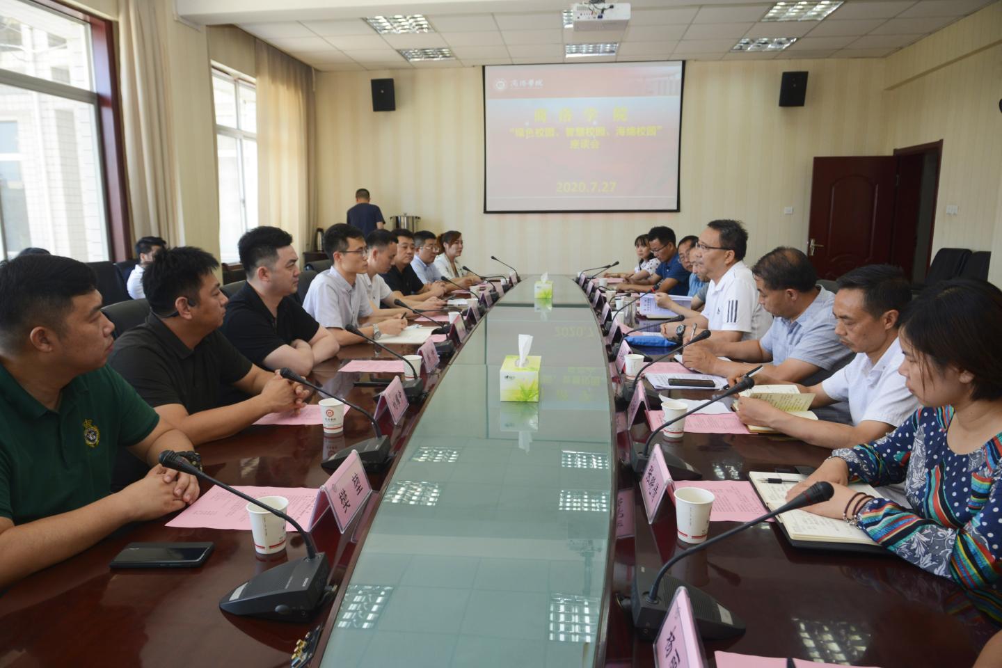 7月27日,教育部學(xué)校規(guī)劃建設(shè)發(fā)展中心處長王晴、中教能源研究院院長黃剛、中教能源西北分院院長韓帥,陜西炳鷂實業(yè)有限公司董事長吳君清、總裁李昭輝、副總裁樊堃,陜西和萬興教育科技有限公司董事長劉耀中等領(lǐng)導(dǎo)嘉賓來校就“綠色校園、智慧校園、海綿校園”建設(shè)事宜進行調(diào)研座談。校黨委書記龍治剛出席座談會,副校長王新軍主持座談會,院長辦公室、教務(wù)處、發(fā)展規(guī)劃處、財務(wù)處、資產(chǎn)處、后勤保障處、信息中心相關(guān)負(fù)責(zé)人參加座談交流。