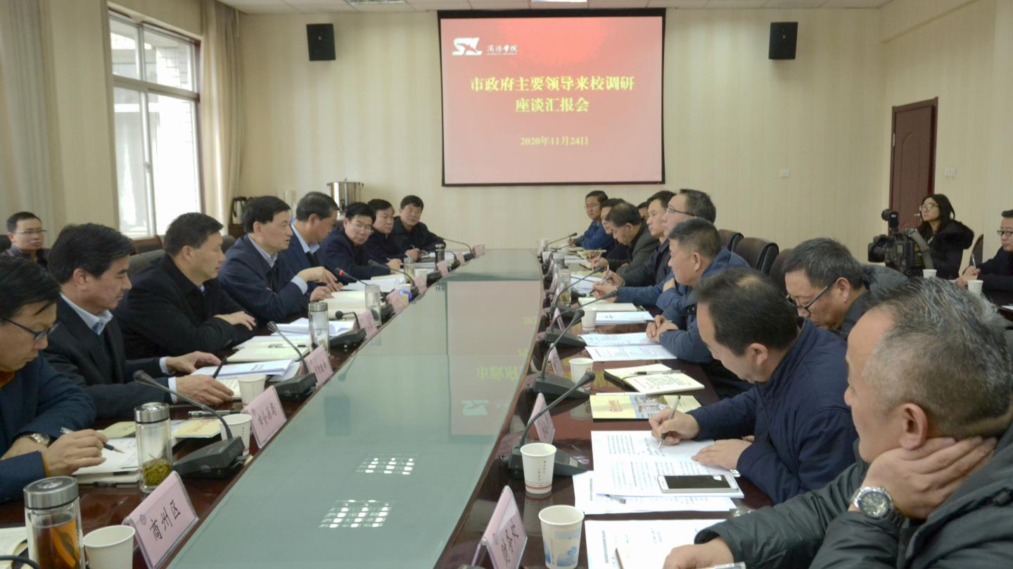 11月24日,市委副書記、市長鄭光照帶領商州區(qū)政府、商洛高新區(qū)(商丹園區(qū))管委會和市級相關部門負責同志,來我校調(diào)研學校建設發(fā)展情況,召開座談匯報會研究解決困難問題。副市長周秀成、市政府秘書長劉永康一同調(diào)研并參加調(diào)研座談。校黨委書記龍治剛主持座談會,校黨委副書記、校長范新會匯報工作。