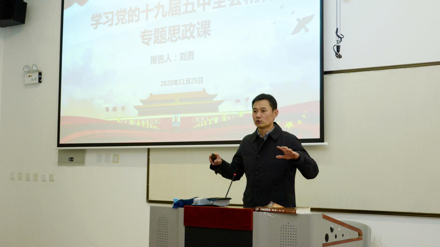 校黨委副書記劉勇在講授中強(qiáng)調(diào),深入學(xué)習(xí)貫徹黨的十九屆五中全會(huì)精神,就是要加強(qiáng)黨對(duì)教育工作的全面領(lǐng)導(dǎo),深刻理解和把握我國(guó)2035年遠(yuǎn)景目標(biāo)和“十四五”主要目標(biāo),充分認(rèn)識(shí)其中凸顯的以人民為中心的發(fā)展思想,聚焦新發(fā)展階段、新發(fā)展理念、新發(fā)展格局和貫穿其中的高質(zhì)量、可持續(xù)發(fā)展要求,聚焦提升教育質(zhì)量、推動(dòng)內(nèi)涵式發(fā)展。他指出,高質(zhì)量發(fā)展離不開高素質(zhì)人才的支撐,廣大青年學(xué)子要立志高遠(yuǎn),在新發(fā)展格局中找準(zhǔn)自己的位置,從小事做起,不厭其小、以促其大,在報(bào)效祖國(guó)、服務(wù)社會(huì)中實(shí)現(xiàn)自身價(jià)值。
