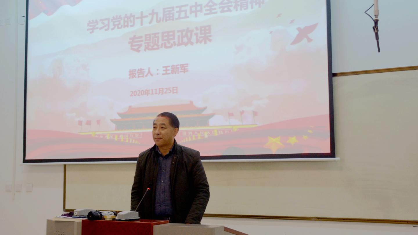 為深入學(xué)習(xí)領(lǐng)會(huì)黨的十九屆五中全會(huì)精神,推動(dòng)全會(huì)精神在我校師生中入腦入心、落地生根, 11月25日,校領(lǐng)導(dǎo)龍治剛、范新會(huì)、劉勇、劉寶盈、王新軍深入聯(lián)系院部的思政課課堂,為1000余名學(xué)生宣講黨的十九屆五中全會(huì)精神。二級(jí)學(xué)院黨總支負(fù)責(zé)人、輔導(dǎo)員及相關(guān)教師一同聽課學(xué)習(xí)。
