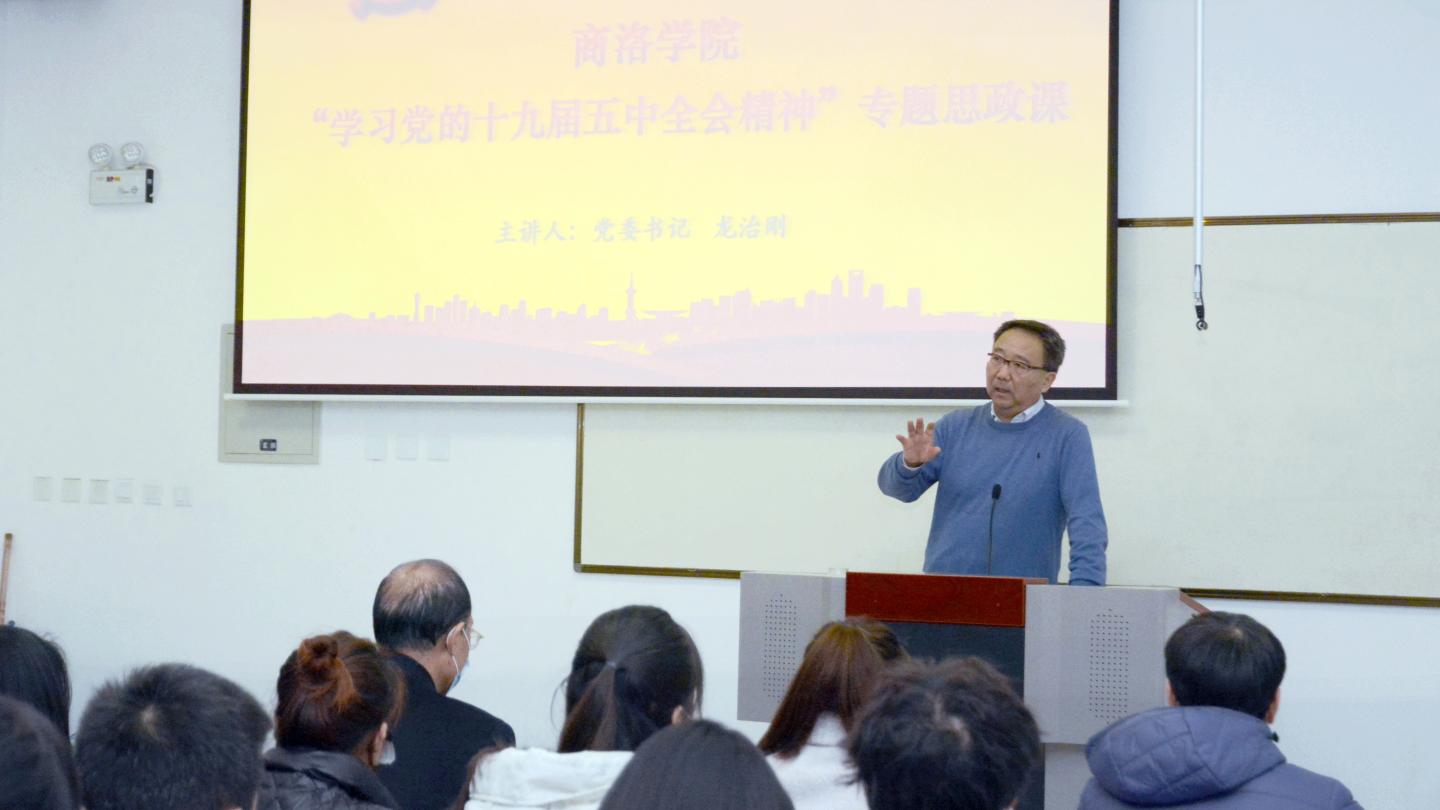 校黨委書記龍治剛在思政課上圍繞黨的十九屆五中全會(huì)的意義、主要內(nèi)容和重大部署等方面,結(jié)合高等教育實(shí)際,對(duì)全會(huì)精神進(jìn)行了全面宣講和深入闡釋。他用一個(gè)新奮斗目標(biāo)、兩個(gè)統(tǒng)籌計(jì)劃、三個(gè)"新"、四個(gè)全面新布局、五大發(fā)展理念、六個(gè)發(fā)展目標(biāo)解讀了規(guī)劃《建議》,引導(dǎo)青年大學(xué)生切實(shí)把思想和行動(dòng)統(tǒng)一到全會(huì)精神上來,把青年人的智慧和力量匯聚到實(shí)現(xiàn)全會(huì)確定的各項(xiàng)目標(biāo)任務(wù)上來,將個(gè)人理想與國(guó)家理想相融合,立志為這個(gè)偉大的新時(shí)代“立德、立功、立言”。他談到,“青春是用來奮斗的”,新時(shí)代大學(xué)生應(yīng)珍惜歷史機(jī)遇,胸懷實(shí)現(xiàn)中華民族偉大復(fù)興的中國(guó)夢(mèng),立志為國(guó)奉獻(xiàn)、為民服務(wù),成為中國(guó)特色社會(huì)主義事業(yè)的接班人,做有理想有擔(dān)當(dāng)?shù)臅r(shí)代新人。