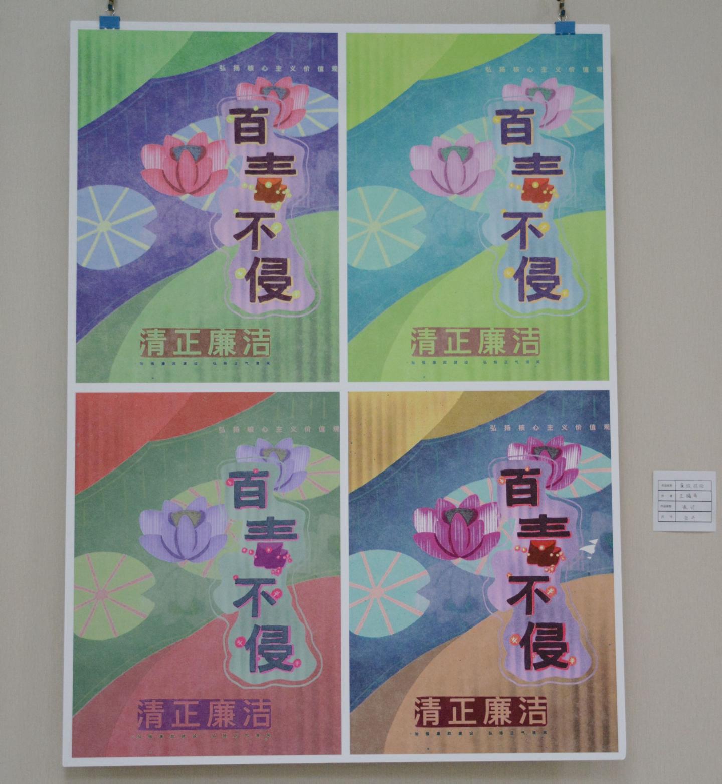 今年8月,校紀(jì)委組織開展了廉政文化建設(shè)創(chuàng)新工程項(xiàng)目活動(dòng),向全校師生征集廉政文化作品。活動(dòng)啟動(dòng)以來,各黨總支、直屬黨支部高度重視、積極參與,用多樣的形式詮釋“廉政”的內(nèi)涵。活動(dòng)共征集到廉政文化項(xiàng)目20個(gè),經(jīng)評(píng)審、整合、打磨,最終凝練為14個(gè)精品項(xiàng)目,包含原創(chuàng)書畫作品、歌曲、視頻、詩歌、理論研究文章等多種類別。其中,書畫作品展項(xiàng)目前期共征集書畫作品300余幅,經(jīng)過多次甄選,最終優(yōu)選150余幅在本次作品展中進(jìn)行了展出。此外,本次展出還播放了8部廉潔教育小視頻。