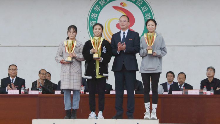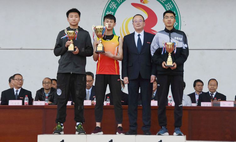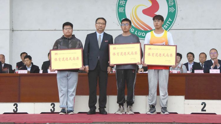在熱烈的掌聲中,黨委書記龍治剛為獲得體育道德風(fēng)尚獎(jiǎng)的團(tuán)體頒獎(jiǎng),校長(zhǎng)范新會(huì)為男女團(tuán)體總分前三名頒獎(jiǎng),副校長(zhǎng)郭瑾為男子及女子團(tuán)體總分前三名頒獎(jiǎng)。