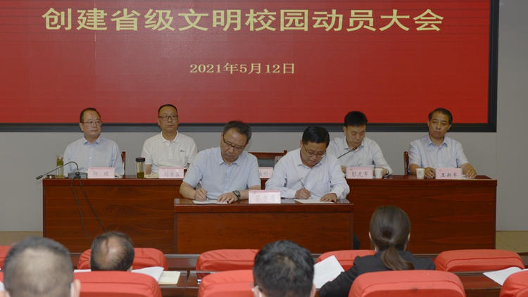 為扎實開展省級文明校園工作,充分營造人人知曉創(chuàng)建、人人支持創(chuàng)建、人人參與創(chuàng)建的良好氛圍,確保各項創(chuàng)建工作任務(wù)高質(zhì)量高標(biāo)準(zhǔn)落實,5月12日,我校召開創(chuàng)建省級文明校園動員大會。校黨委書記、創(chuàng)建省級文明校園工作領(lǐng)導(dǎo)小組組長龍治剛作動員講話,黨委副書記、創(chuàng)建省級文明校園工作領(lǐng)導(dǎo)小組副組長、辦公室主任彭虎軍主持大會并對創(chuàng)建工作進(jìn)行安排部署。全體校領(lǐng)導(dǎo),創(chuàng)建省級文明校園工作領(lǐng)導(dǎo)小組成員及全體副處級以上干部參加大會。